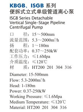 KBGB、ISGB系列便拆式立式單級管道離心泵